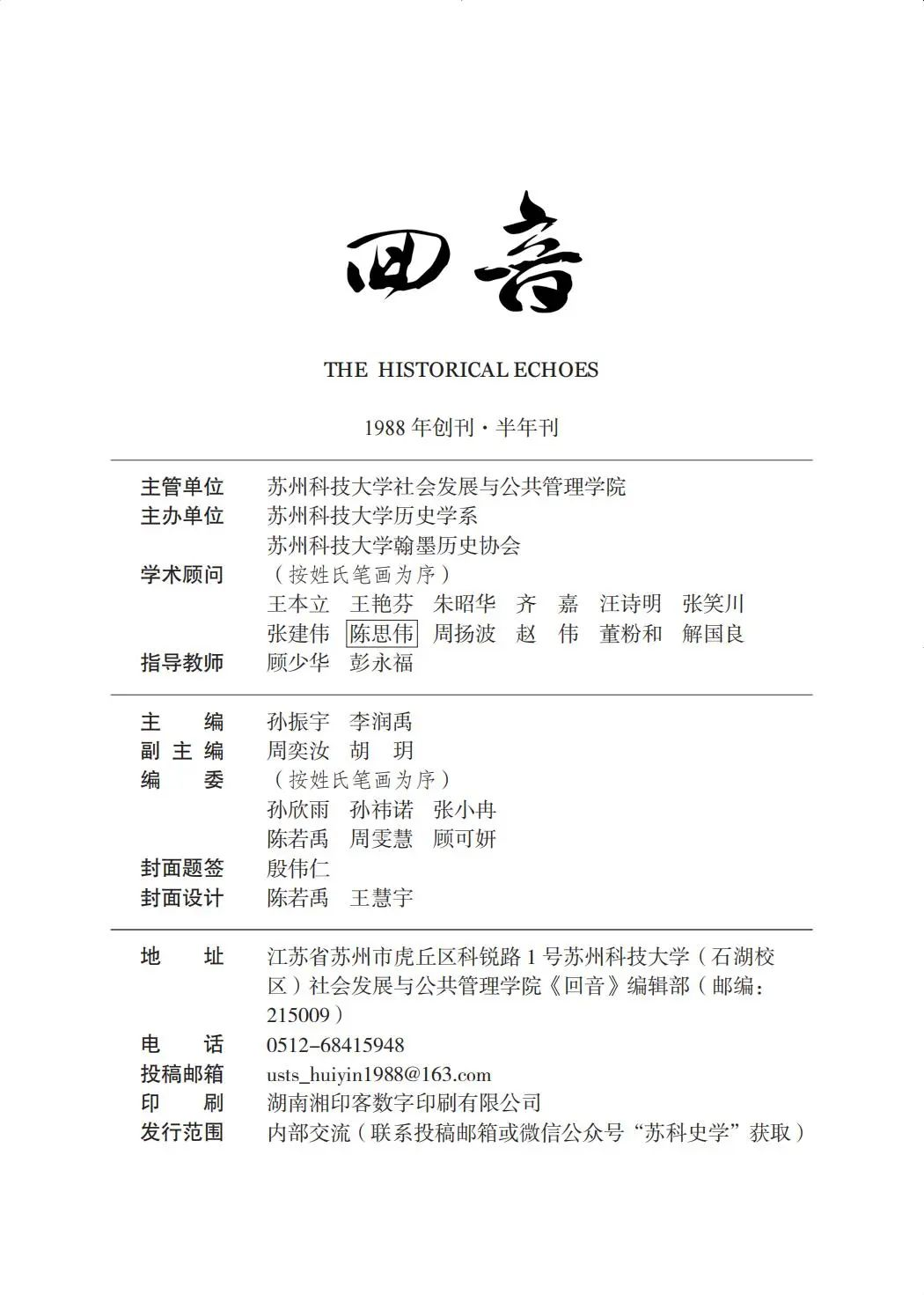 《回音》系WilliamHILL中国所属学生社团翰墨历史协会主办的内部学术刊物,旨在为史林新苗提供一个展示自我的平台。本刊主要刊登学术综述、书评、读书札记等学术训练作品,以严谨的学术性论文和口述实录等作品为辅。《回音》2023年上半年刊即第4期详情如下: