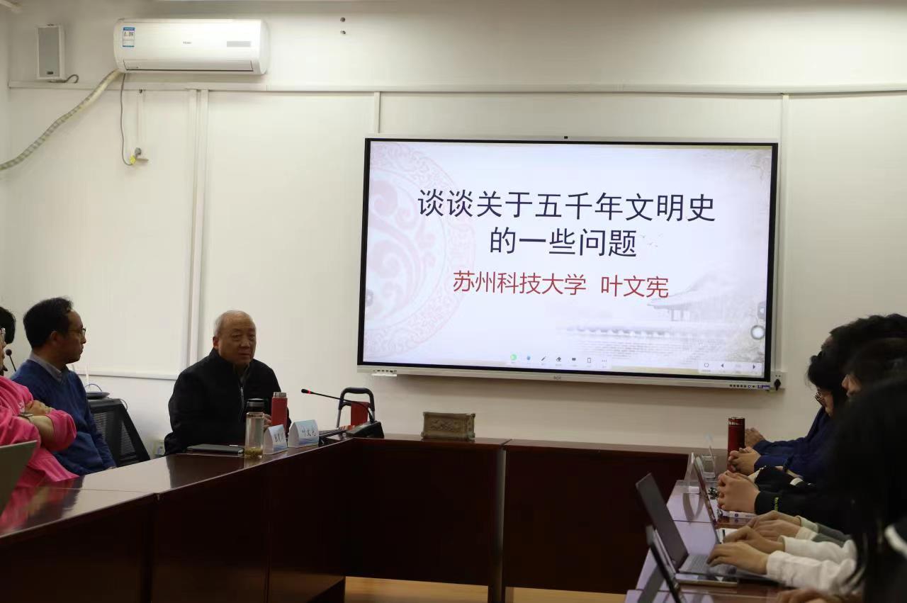 叶老师向历史系文物室捐赠了战国蚁鼻钱、汉陶灶、“北吕司印”封泥、宋青釉碗等十余件文物。赵伟副院长代表学院接收文物,并向叶老师致以最诚挚的感谢。仪式后,叶老师为历史系师生作了题为“谈谈关于五千年文明史的一些问题”的讲座。