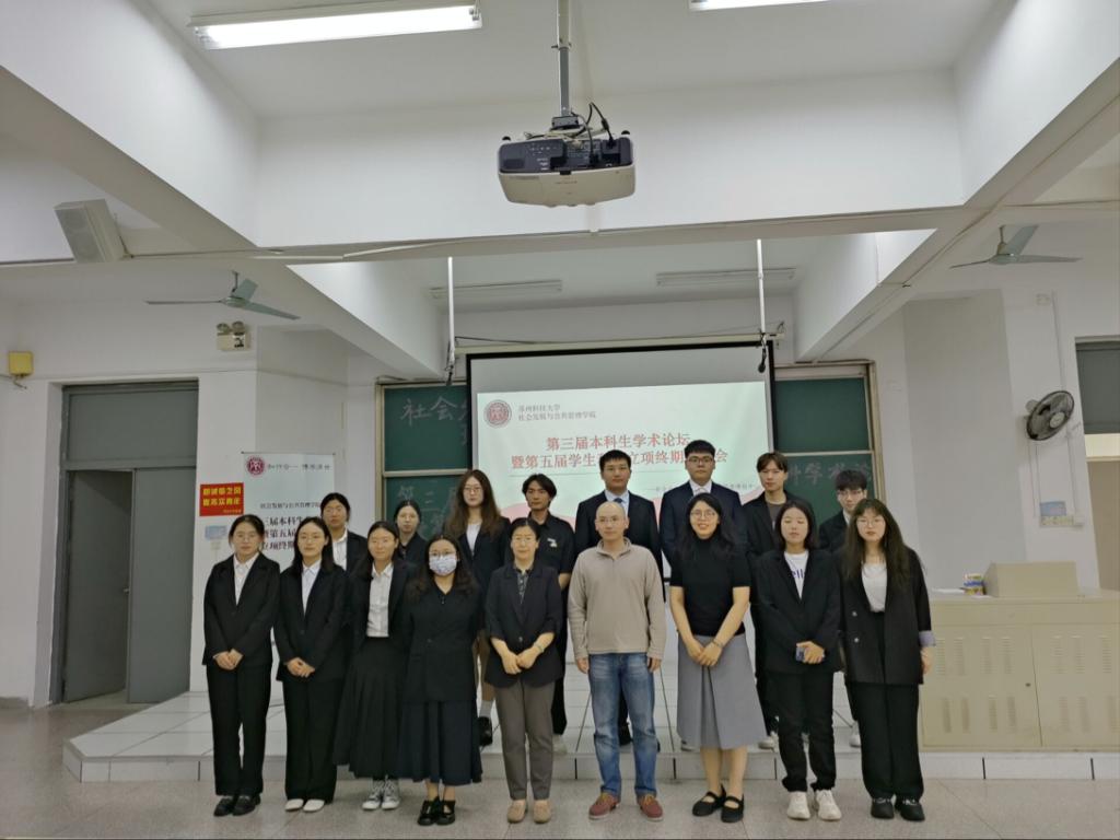15个项目组参与现场汇报,项目主题涉及社区治理、特色小镇发展、社会工作、红色文化、非物质文化遗产创新等多个专业领域。三位评委从课题的选题、项目特色创新点、研究进展状况、结题报告的规范性等方面进行了提问和点评,并提出指导意见。