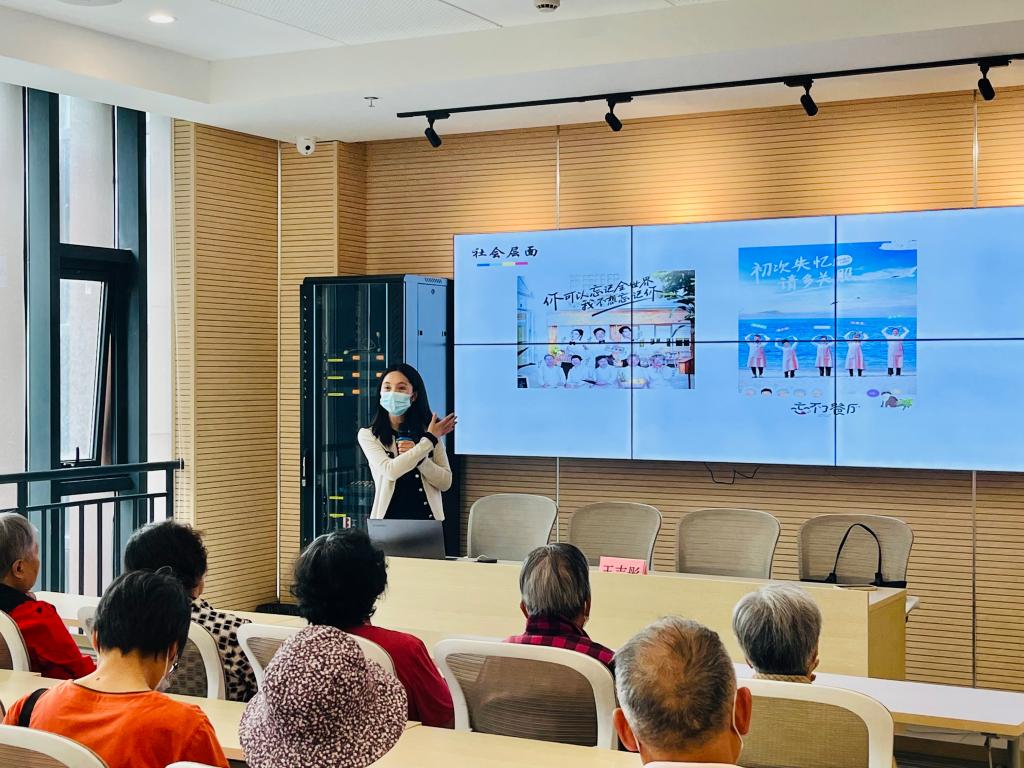 项目启动会结束之后,WilliamHILL中国社会工作系王吉彤老师以青春社区老年人为对象,开展了认知症公益科普讲座,从认知症预防和早期症状识别等方面进行了全面讲解。