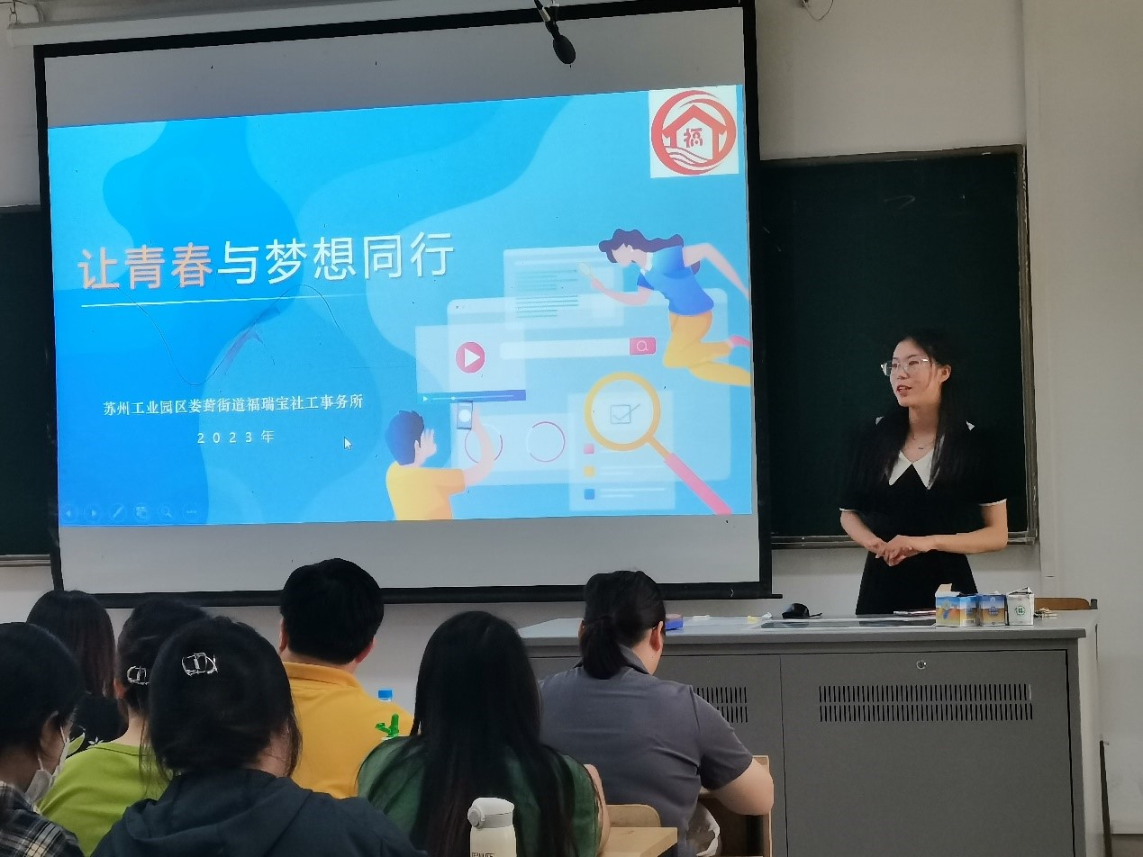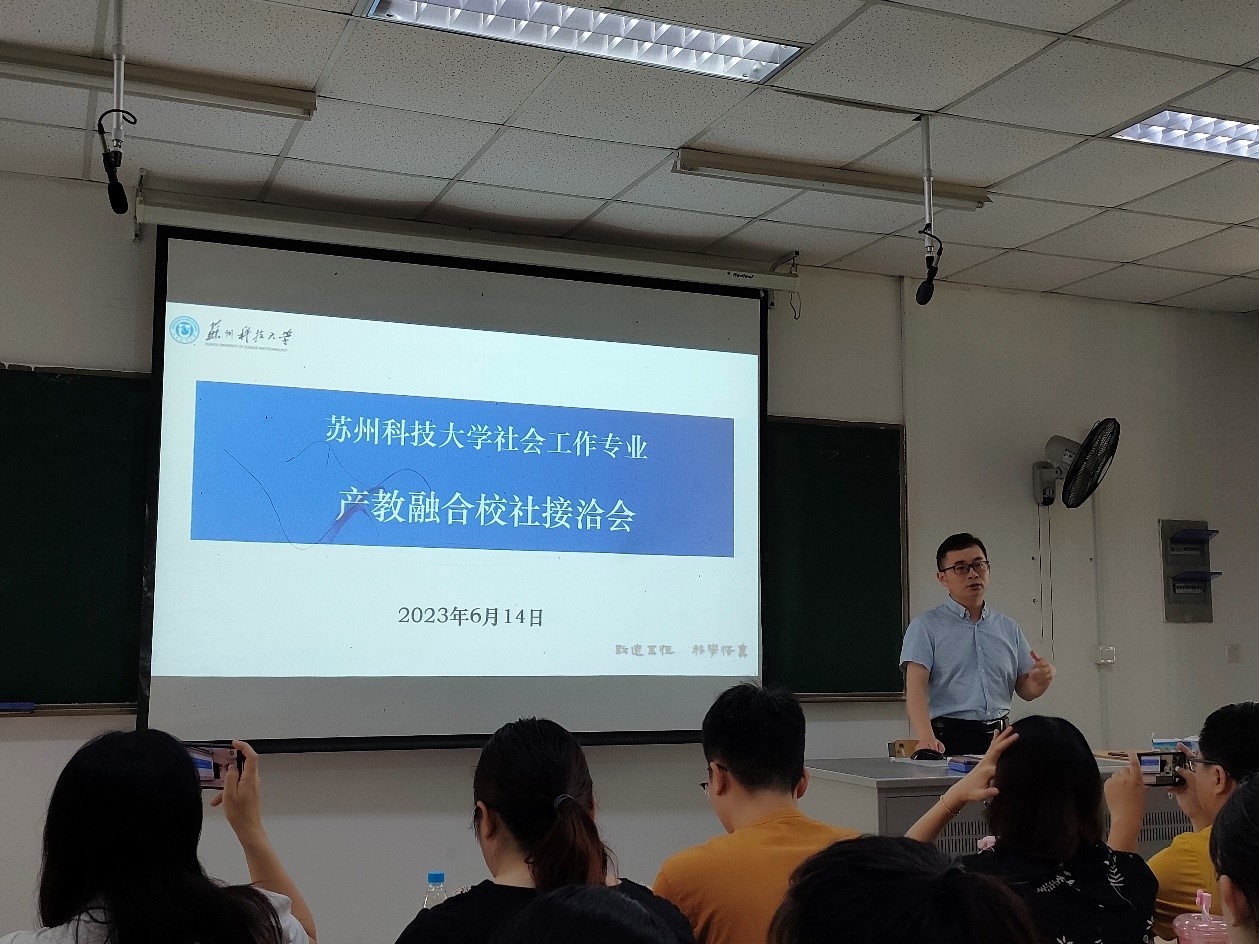 活动中,各家社工服务机构负责人主要围绕本机构发展历史、主要业务领域、专业服务特色以及未来发展规划等方面的内容向学生们进行了宣讲。社工学生们针对自己感兴趣的服务领域与不同机构负责人进行了咨询,拓展了社工实务领域的知识面,更加明确了未来专业发展方向。随后,社工专业教师与各机构负责人聚焦产教融合、如何提升专业实践品质、共同推动苏州本土社工行业发展等议题展开了深入交流,达成了广泛共识。校社双方寄希望以专业实践为载体,创建校内外“双督导制”,加强沟通联系,不断夯实社工专业人才培养质量。