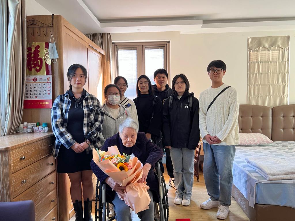 全体师生在社区负责人的带领下参观了瑞颐康养社区,了解社区构成、助老设施、入住老人情况并分为四组看望抗美援朝老战士。