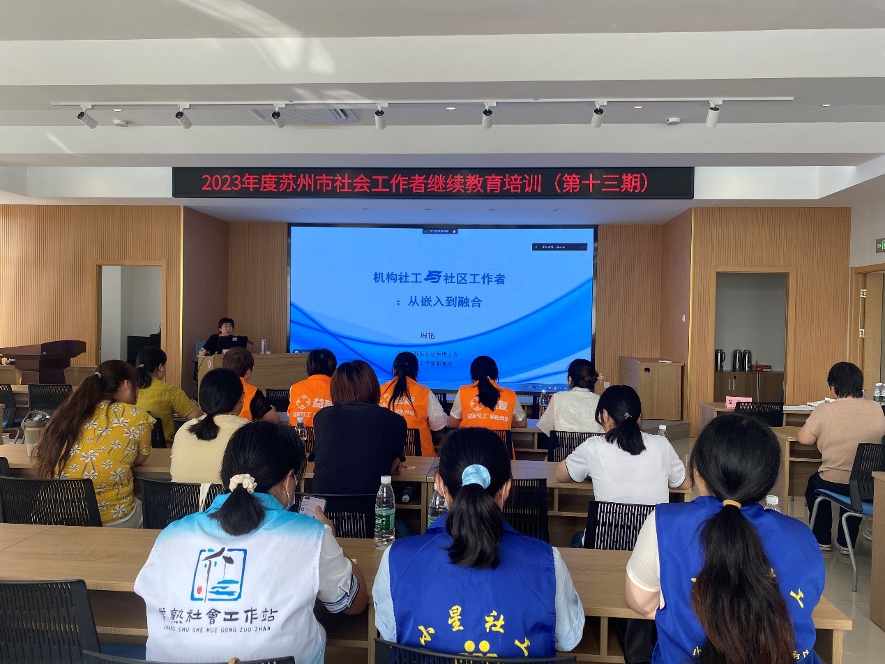 本次系列社工人才继续教育培训活动,为扩大对苏州下辖区县的辐射力与影响力,广泛征求了苏州四个下辖区县的培训建议,立足各区域社工人才的实际需求,整合苏州本土高校及社工实务领域内的优质师资及培训课程资源,为各区县社工人才精准化输送合适的师资与培训课程。在培训师资甄选上,实施了市本级及各区县专家跨越区域、交叉授课的方案。培训形式采取线上线下双向渠道同步推进。主要围绕基层社区治理创新、“五社联动”及相互关系、社区工作方法探索、“一老一小”人群服务等社工行业前沿主题展开。培训现场,社工学员针对相关议题与授课专家进行了深入讨论。培训活动得到了各区县民政部门的大力支持。