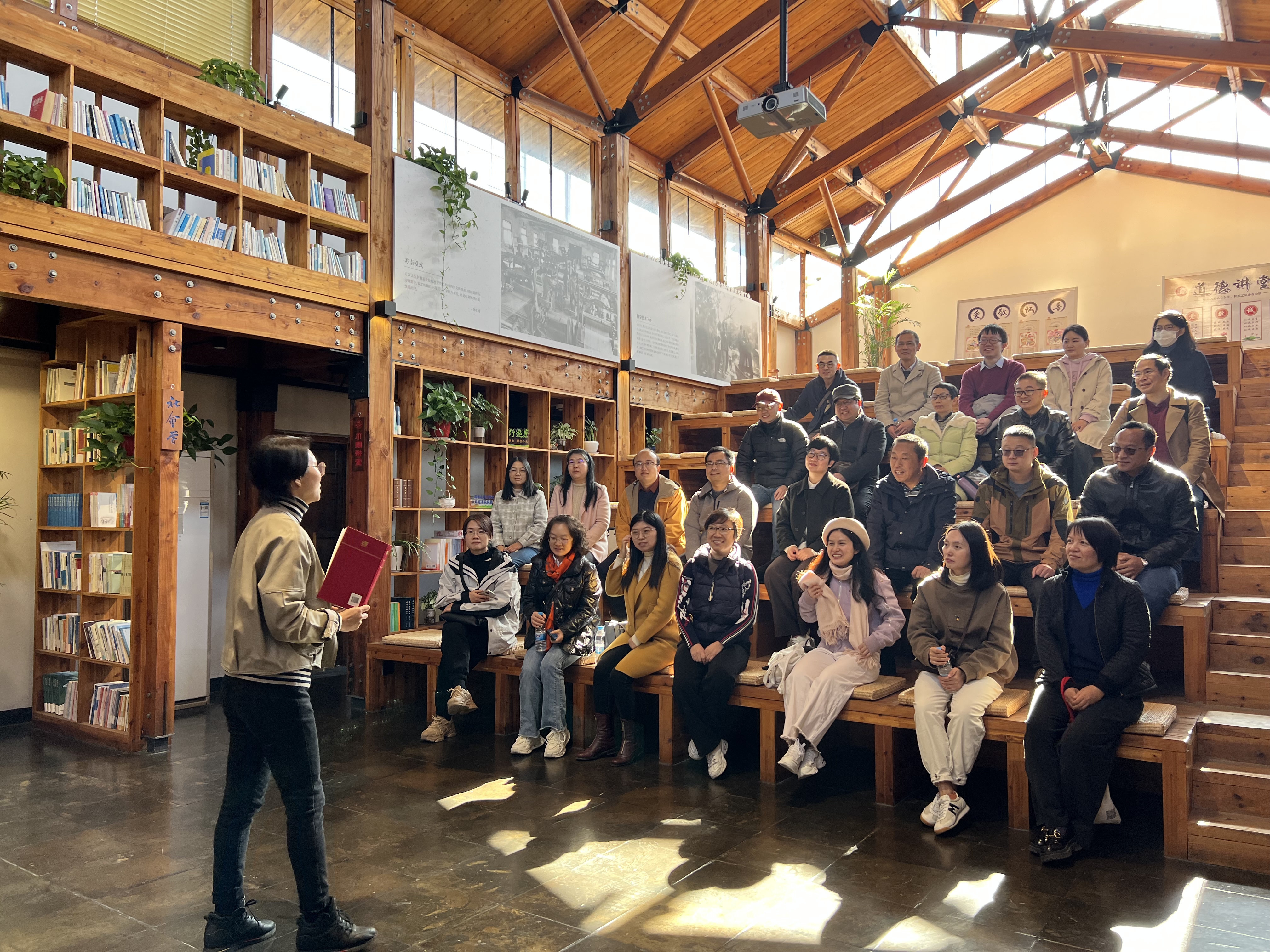 在纪念馆,教职工认真参观学习费老社会调查的大量珍贵图片和学术成果,领悟费老“从实求知”的治学理念与“志在富民”的学术宗旨;在开弦弓村大礼堂,孟庆艳分享了参观学习感悟,号召教职工共画立德树人最大同心圆,共聚服务社会最强奋进力。