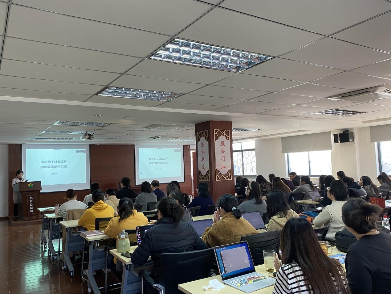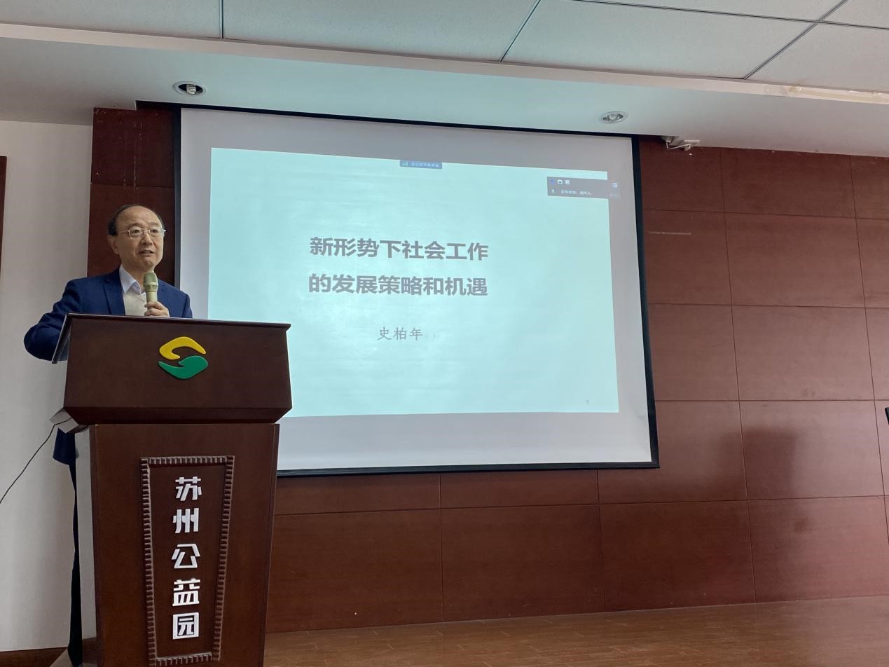 11月21日,由苏州市民政局主办,williamhill威廉希尔、苏州市社会工作者协会共同承办的2023年度苏州市社工人才继续教育培训(第十七期)在苏州公益园举办。原中国社会工作教育协会副会长兼秘书长,现中国社会工作学会学术委员会主任史柏年教授,江南大学社会学系主任汪冬冬副教授现场授课,苏州市及牵手计划三市(南通、徐州、连云港)持证社工近400余人通过线上线下等形式参加了培训。