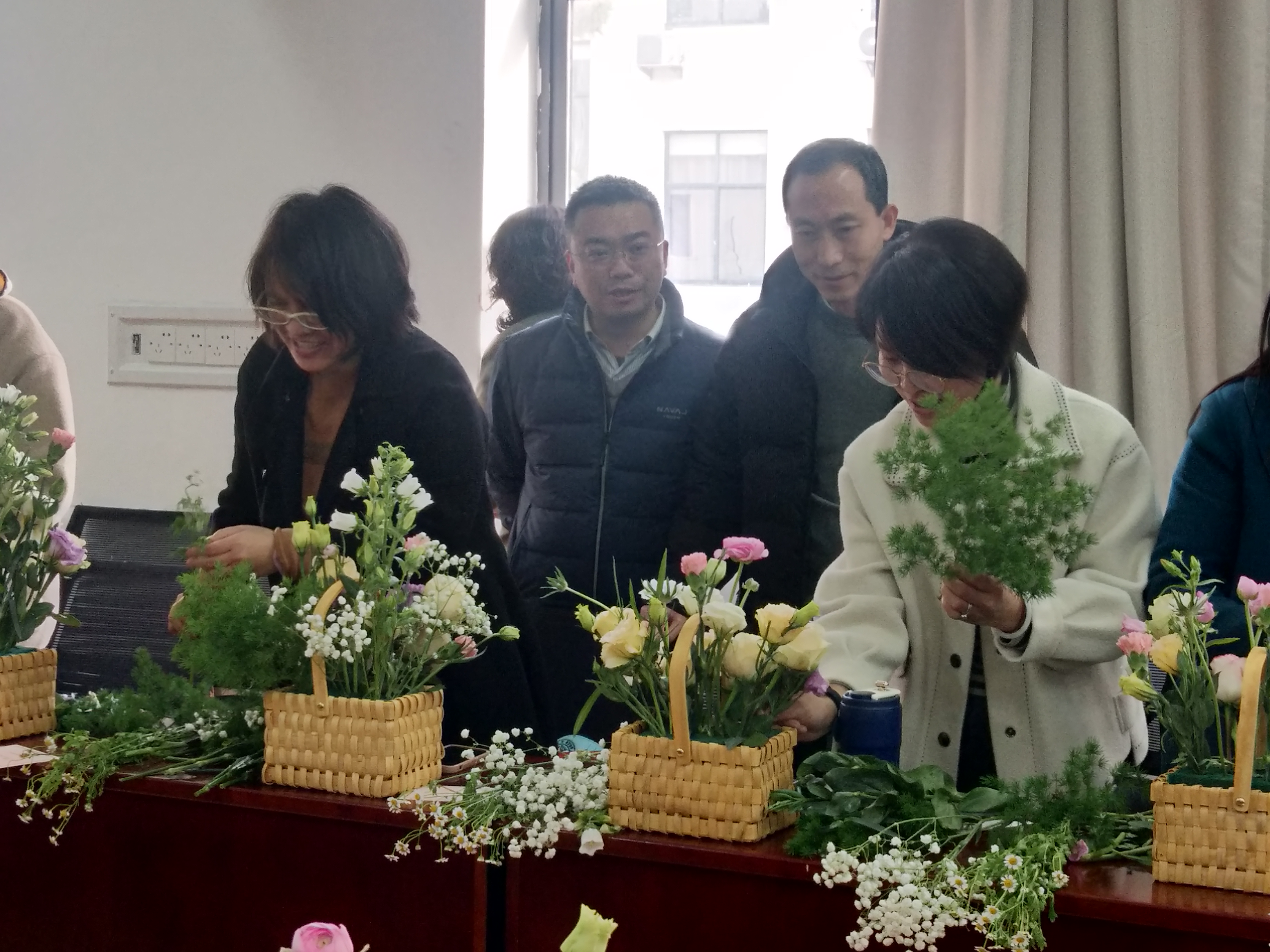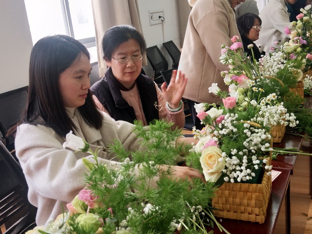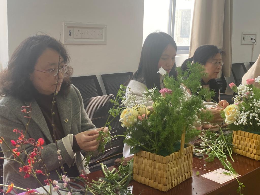 3月13日下午,“繁花绘巧思,礼赞‘她’力量”花艺体验活动在教一楼213室举行。女教工在花艺老师的指导和带领下,沉潜心灵,与花对话,将对生活的巧思融入到插花艺术中,互鉴互赏,热烈沟通活动体验,花艺作品灵动多变,各具特色。其间,学院领导也来到活动现场,为女教职工送上节日问候,并充分肯定了女教职工“巾帼不让须眉”的付出。