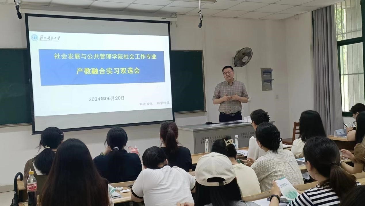 620日,由我校社会工作者协会组织的社会工作专业产教融合实习双选会及校社联动洽谈会在我校成功举行。苏州市10家社工服务机构负责人,社工专业部分师生代表参与了现场宣讲及交流。活动由社会学系主任王春主持。