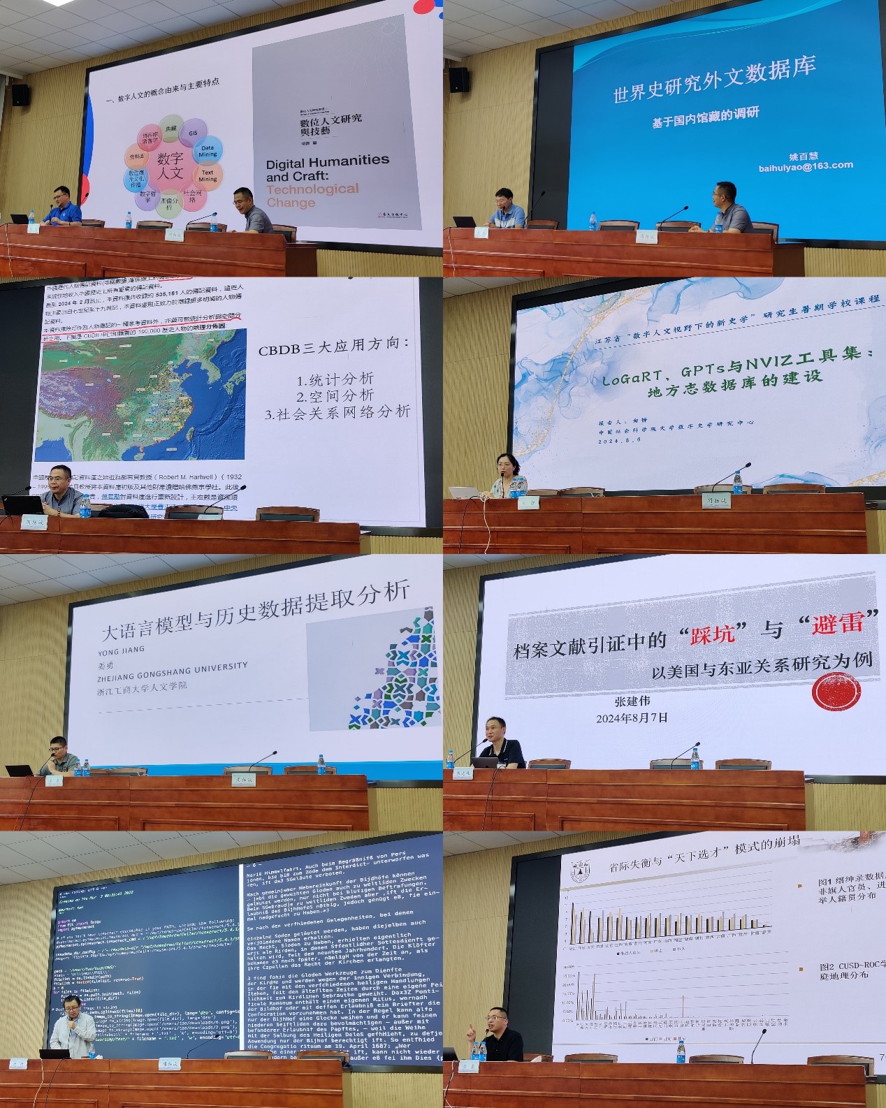 在随后的6次课程中,周扬波教授展示了如何利用“中国历代人物传记资料库”(CBDB)进行中国古代史群体传记学研究;中国社会科学院大学数字史学研究中心主任向静副教授介绍了基于“地方志研究工具”LoGaRT进行中国古代地方志研究的方法;浙江工商大学人文与传播学院姜勇副教授讲解了以ChatGPT为代表的大语言模型在历史数据提取分析中的应用;WilliamHILL中国张建伟副教授介绍了国际关系史领域的重要数据库,列举了文献解读与引证的步骤;南京大学历史学院副院长、数字史学研究中心主任王涛教授阐述了大语言模型的工作原理,讨论了AI在辅助历史研究中能够扮演的多重角色;南京大学历史学院副院长梁晨教授以中国近现代教育史研究为例,说明了量化数据库在推动史学研究创新中的重要性。
