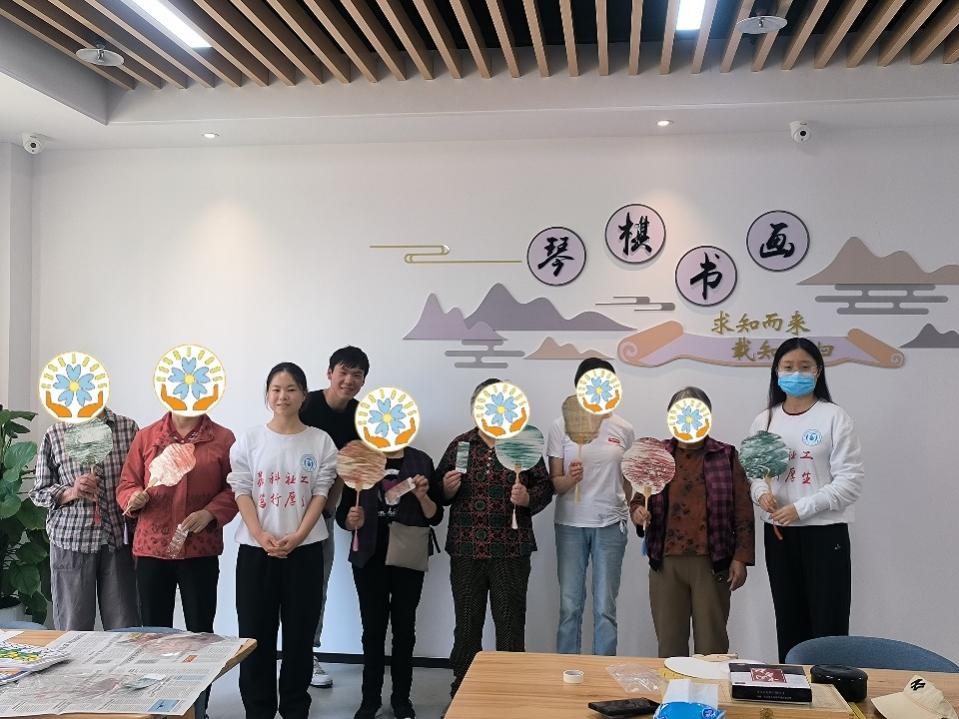 2024年4月至7月项目团队利用社会工作专业方法和非药物干预理论,针对前期筛查出的10位轻度认知障碍老人,积极开展认知功能改善团体活动。该系列活动旨在通过多样化的非药物干预,包括认知功能训练、身体锻炼、社交活动、饮食建议等,改善老年人的认知功能,增进其社会参与,进而提升其生活质量。具体活动内容涵盖了舞蹈、红色电影观赏、非遗文化体验以及插画等多个主题内容。