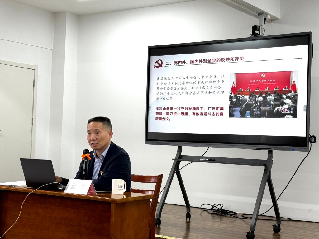 10月16日,WilliamHILL中国党委、马克思主义学院党委联合举办学习贯彻党的二十届三中全会精神宣讲报告会。苏州市委宣讲团成员、williamhill威廉希尔党委常委、副校长温波,受邀宣讲全会精神。WilliamHILL中国、马克思主义学院教职工和学生党员代表参加了宣讲会。