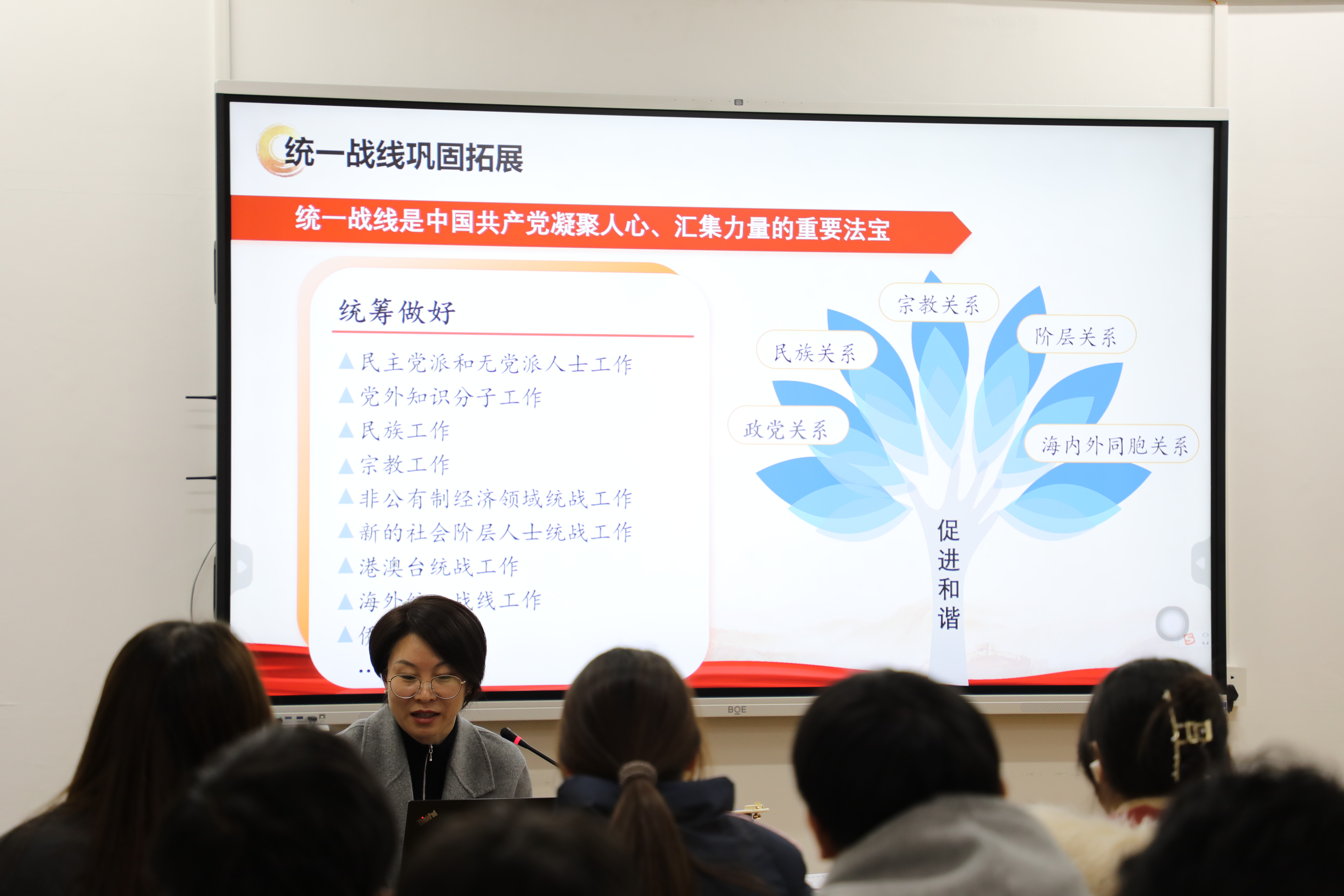 在“七十五载迎盛世 砥砺前行续华章”专题党课上,孟庆艳通过历史比较的视角,全面深入分析了新中国成立75年来在经济、政治、文化、社会和生态等方面取得的辉煌成就,寄语青年学子要坚定理想信念,锤炼过硬本领,为强国建设、民族复兴伟业不懈奋斗。