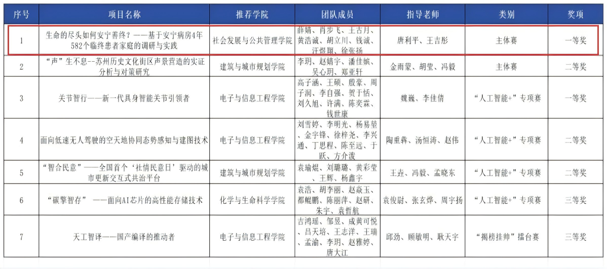 据悉,本届竞赛共吸引来自全国2700多所高校的40余万件作品、300多万名学生参赛,终审决赛共有640件和643件作品分别入围主体赛和“人工智能+”专项赛终审决赛。此次“挑战杯”国赛的里程碑式突破,是学院师生同心砥砺、协同创新的生动缩影。展望未来,社院学子必将以更昂扬的姿态投身实践洪流,以智慧与汗水镌刻新时代的青春答卷,为推进中国式现代化贡献磅礴青春力量!