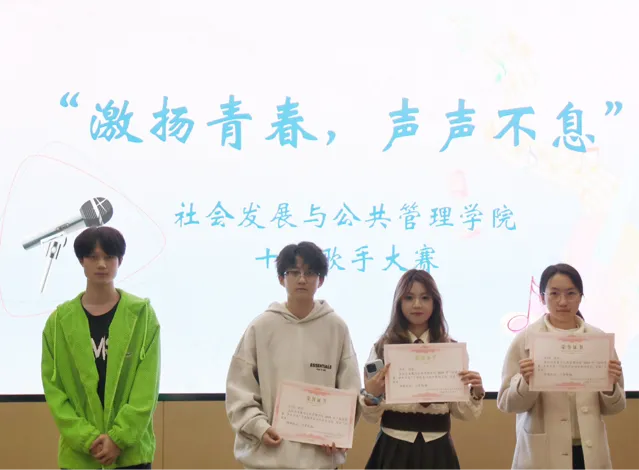 整个比赛过程顺利进行,主持人周怡进行了选手介绍,紧接着选手们争相展现出自己扎实的唱歌功底,获得观众们热烈的反响。演唱进行的同时,评委们也在对选手们进行观察考验,从多个方面进行综合评分,给予比赛的绝对公平。在最终算分的同时,2023届校十佳歌手代表范雨婷为我们带了歌曲《等》展现了他高超的歌唱技巧,也给选手们进行了展示。比赛尾声,名次也依次揭晓,社保杨宇轩凭借自己丰富的舞台经验和扎实的功底成功后获得一等奖,社保戴致诚、鲁尹凌获得二等奖,社保赵秋逸、曾雨菡、史师陆思昳获得三等奖、史师陈晴雨、司艳阳、杨宵艺、李梦涵程雨桐组合、社工孜尔迪•阿亚力汗获得参与奖。