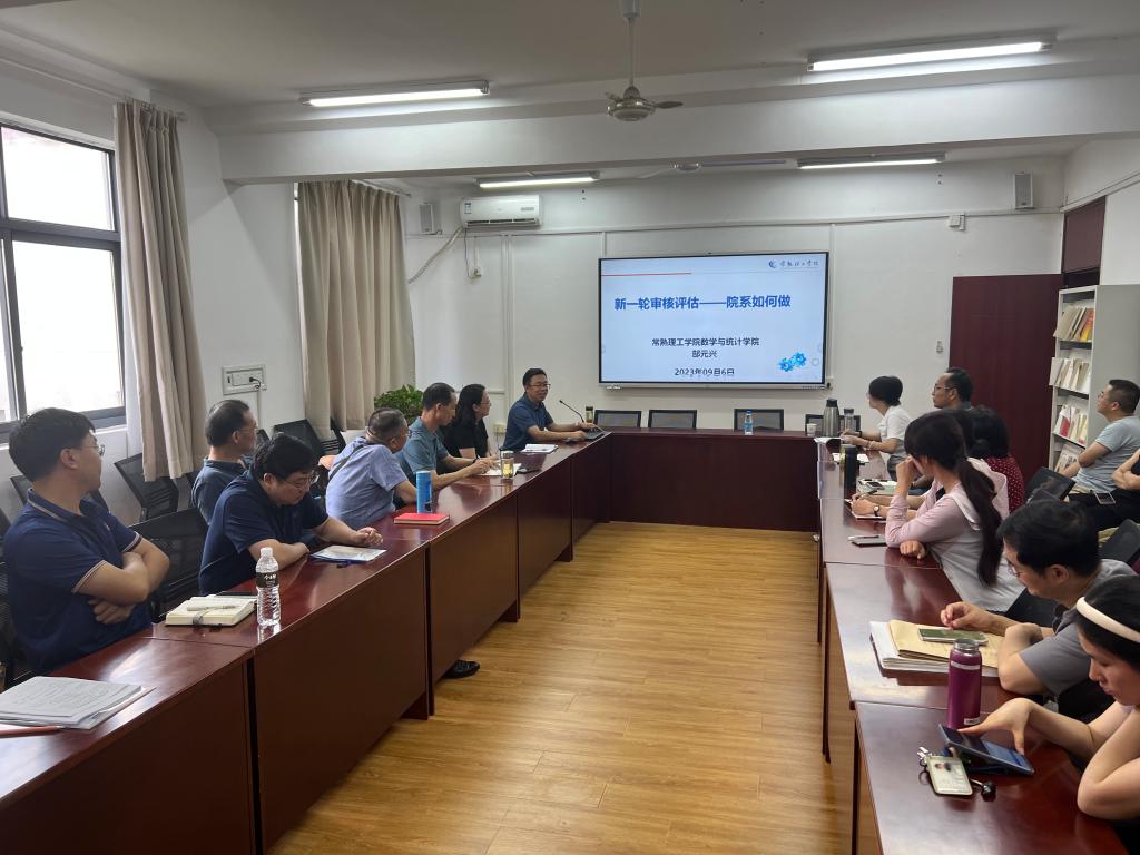 会议特邀常熟理工学院数学与统计学院副院长郜元兴教授作题为《新一轮审核评估——院系如何做》的专题辅导报告。他从新一轮审核评估的背景与主要特点、内容与核心意蕴、过程与注意事项进行了解读,特别是针对院系层面在审核评估自评自建环节重点工作进行了全面细致的讲解,并分享了自己的实践经验。