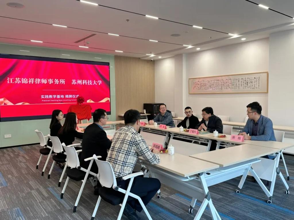 20241029日下午,公共管理系主任丁福兴等一行四人前往江苏锦祥律师事务所参加了校企合作业务洽谈与实践教学基地揭牌仪式,受到了律所法人代表林刚及其他几位主要合伙人律师的热情接待。
